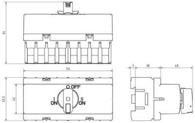 Change-over switch for KU 16-125 A, Positions 1, 0, 2, black handle