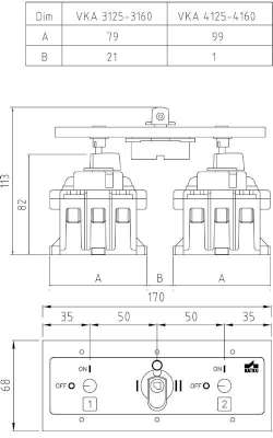 Change-over switch for VKA 125-160 A, Positions 1, 0, 2 with supporting steel