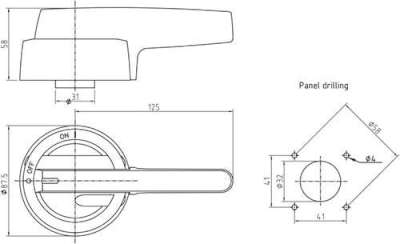 Handle LK13 Y/R for KVKE/VKE 200-630 A, KU 315-800 A, Yellow/Red