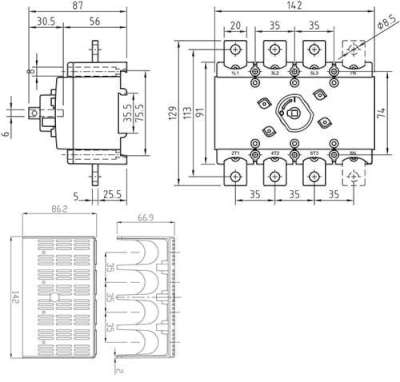 Load Break Switch Rotary Switch AC-21:250 A 4-pole incl handle, shaft, terminal cover & phase barrier