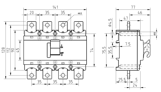 Interrupteur-sectionneur à levier AC-22:200 A 4 pôles red toggle
